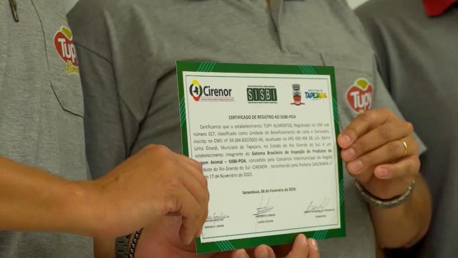 No dia 06 de fevereiro o Consórcio Intermunicipal da Região Nordeste - CIRENOR, em parceria com o Município de Tapejara, realizou uma cerimônia para a entrega do Certificado de Adesão ao SISBI-POA (Sistema Brasileiro de Inspeção de Produtos de Origem Animal) ao Serviço de Inspeção do Município de Tapejara. Além disso, foram concedidos os Certificados de Registro ao SISBI-POA às empresas tapejarenses Laticínios Mabom e Tupy Alimentos. O SISBI-POA, integrado ao Sistema Unificado de Atenção à Sanidade Agropecuária (SUASA), estabelece padrões e procedimentos de inspeção de produtos de origem animal, assegurando a equivalência ao Ministério da Agricultura e Pecuária. A adesão ao sistema exige uma série de medidas efetivas de inspeção higiênico-sanitárias e tecnológicas, garantindo a qualidade dos produtos e possibilitando que os mesmos possam ser comercializados em todo o território nacional. Em 2019, o CIRENOR iniciou sua participação no Projeto CONSIM realizado pelo MAPA, visando ampliar o número de municípios no SISBI-POA e desde então trabalha incansavelmente para que mais municípios possam fazer a adesão ao sistema por intermédio do Consórcio, o que agiliza o processo. As atividades seguem e em breve mais municípios Consorciados receberão a certificação. Acompanhe nosso trabalho!